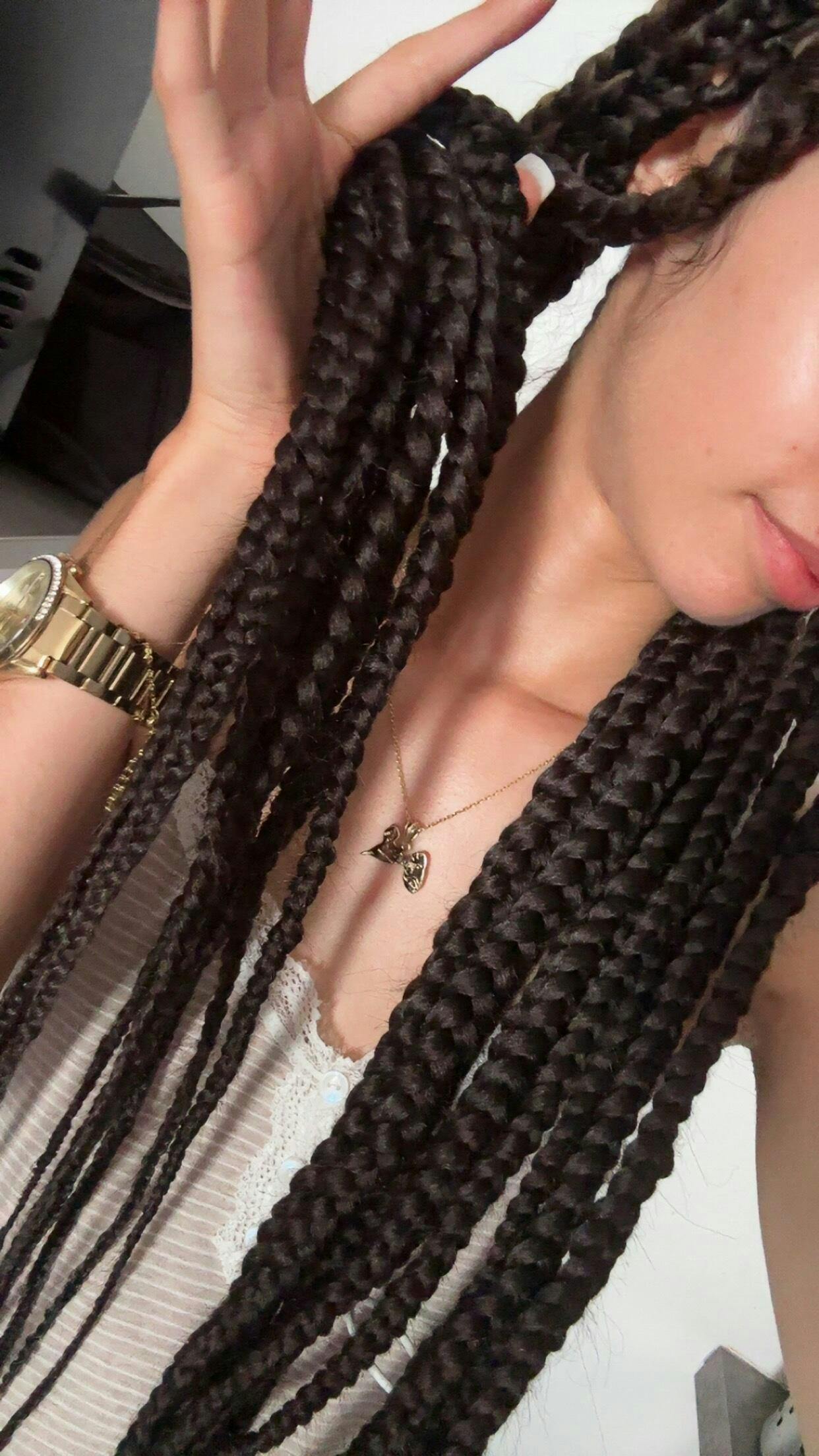 Et parce qu’elle est sobre, tu peux oser toutes les audaces côté coiffure : nattes sculptées, formes originales, volumes maîtrisés.